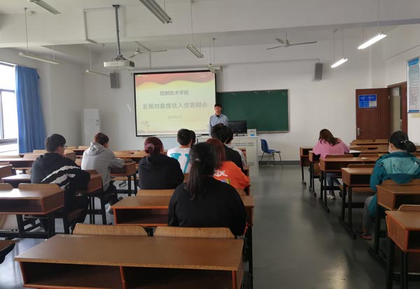 为进一步做好学生党员发展工作,确保发展党员质量,4月7日下午,控制技术学院学生第一、第二党支部在工B604举行了“向党介绍自己”发展对象答辩会。臧渊、杨晨等10位拟发展对象参加了答辩,所在支部委员担任评委。