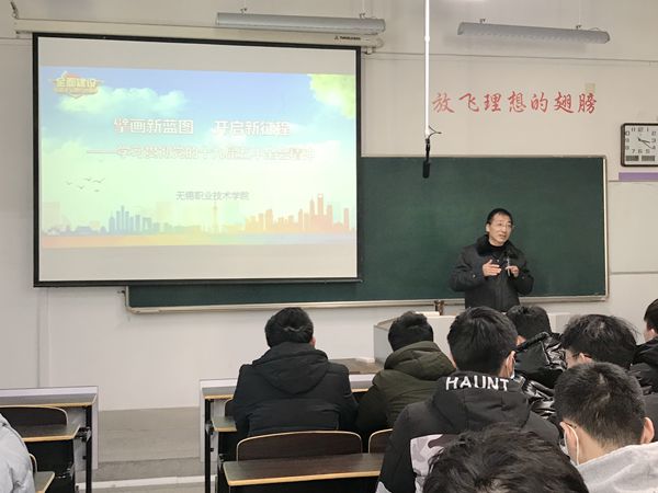 校领导们以“擘画新蓝图、开启新征程”为主题,从开启全面建设社会主义现代化国家新征程引入,为大家详细阐释了十九届五中全会所刻画的中国特色社会主义的新发展阶段、新发展愿景、新发展理念、新发展格局,强调要坚持党的全面领导,动员各方面力量为实现目标而团结奋斗。在讲述过程中,校领导们或结合我校正在进行的“双高”校及智能制造特色校建设实践、或结合无锡地方经济与社会发展成就,为同学们理实相融、深入浅出地介绍我国“十三五”发展成果、2035年远景目标和“十四五”主要目标,引领同学们坚定理想信念,树立正确的价值观、奋斗观,增强使命担当意识,为实现中国梦注入青春能量。