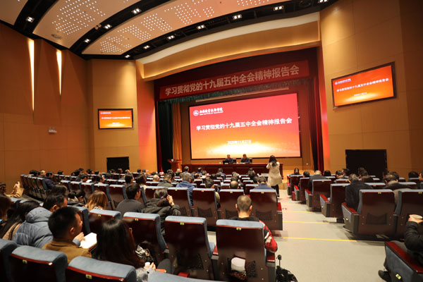 为认真学习贯彻党的十九届五中全会精神,开启学校发展新征程,11月26日上午,乐鱼注册_乐鱼(中国)举办专家报告会暨党委理论学习中心组(扩大)学习会。校领导、全体中层(含助理)干部、全体思政课教师、全体辅导员、部分学生代表等近200人参加报告会。会议由校党委书记朱爱胜主持。
