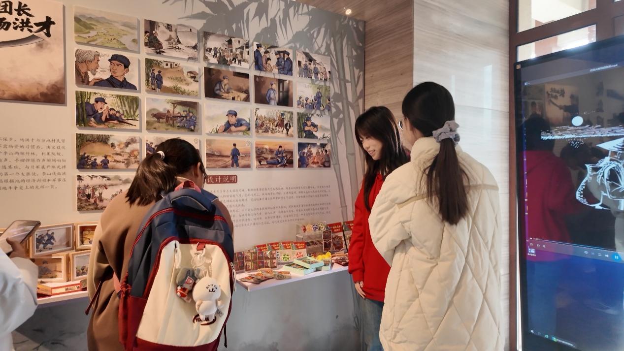 展览现场,作品创作者从故事挖掘叙事、脚本剧本打磨、设计表现手法运用,到抗战精神的传承赓续,以及新时代大学生的使命担当等方面,向观展嘉宾和同学们进行了细致的介绍。《他从抗大走来》作者张万君同学在介绍时感慨道:“以设计的方式纪念抗战胜利,不仅是为了铭记历史、缅怀先烈,更是为了从历史中汲取精神力量、奋进源泉,让抗战精神在新时代焕发新的生命力。”王依梦同学在参观后深受触动,她表示:“看到学长们的作品,心灵上得到了洗礼。作为新时代的大学生,我们要传承好抗战精神,将这种精神融入我们的学习和生活中,努力成为有理想、有本领、有担当的新时代青年。”数字媒体艺术设计专业系主任李雁南老师谈到,每一代人有每一代人的责任,作为新时代的高校教师要将抗战精神、铁军精神一代一代传承下去,利用“家门口”的红色文化资源讲好抗战故事,铭记抗战历史,奋进复兴征程。