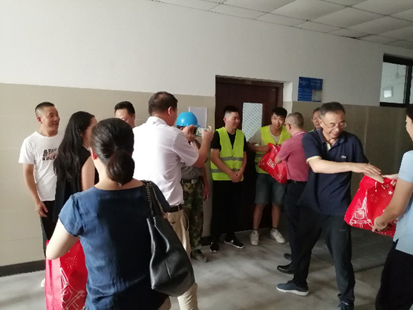 为了确保新学期教学工作有序开展,由汽车学院教代会代表提出的国教中心实训室走廊地毯更换项目,正在紧张有序地进行施工。8月20日下午,正值酷暑高温,副校长杨雪琴、强伟纲带领教代会提案工作小组部分成员、提案代表等来到国教中心慰问暑期一线施工人员和后勤处在岗职工,并送上消暑降温慰问品。