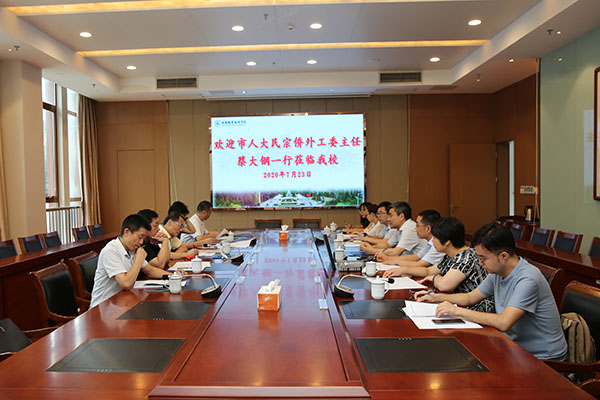 7月23日上午,无锡市人大民宗侨外工委主任蔡大钢、市民宗局一级调研员何鸣等一行五人来校开展民族团结进步创建工作专题调研。校党委书记朱爱胜接待了蔡大钢主任一行,党委统战部、学生处、保卫处领导和相关负责同志参加了调研会。