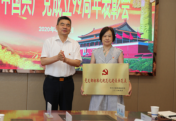 朱爱胜书记为全国党建工作样板支部颁发牌匾