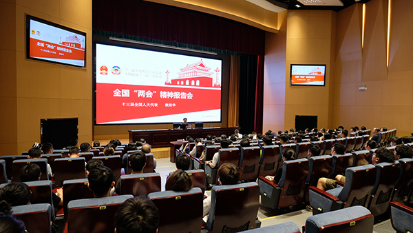 6月12日下午,学校在综合楼一楼报告厅举办十三届全国人大三次会议精神报告会,全国人大代表、宜兴市西渚镇白塔村党总支书记欧阳华应邀作报告,学校党委和党总支两级理论学习中心组成员、机关全体科级以上干部、民主党派代表、马克思主义学院全体教师、全体辅导员、学生代表等到场聆听。