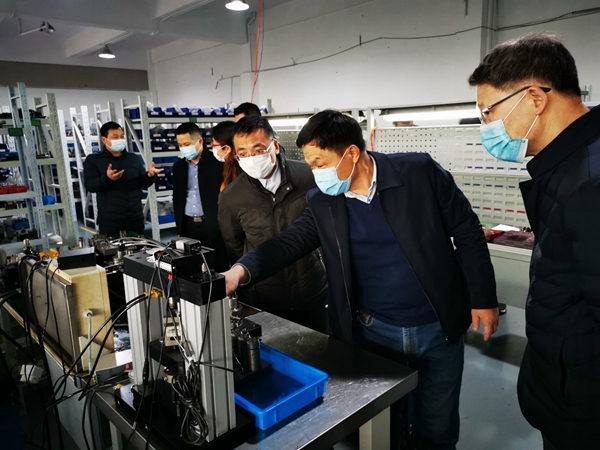 校领导在现场参观液压元件保压实验室
