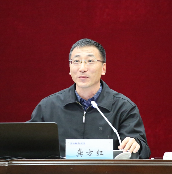 校长龚方红以“聚焦双高建设任务,引领学校高质量发展”为题为与会人员作了专题报告。报告围绕“双高建设与特色发展““双高建设任务”和“2020年重要工作”三个方面展开。既在全体中层干部中作了广泛宣传,又强调和部署了学校今后一个时期的重点建设任务,同时还突出了2020年的主要工作任务和指标。