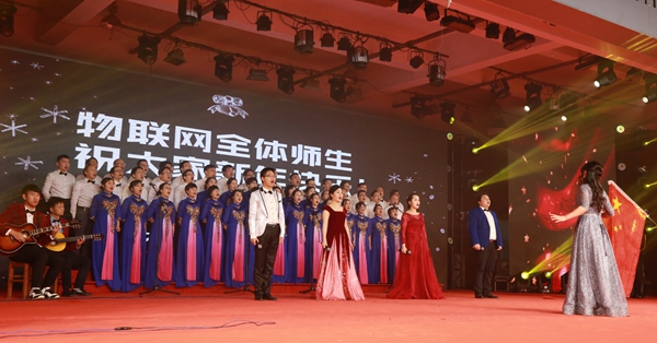 师生联欢会的节目形式多样、内容丰富,既有激昂澎湃的合唱、歌曲串烧,也有优雅、活力的舞蹈,以及兼具视听震撼的诗歌朗诵、音诗歌表演,抽奖环节更是一次次将现场氛围推向高潮。经师生评委代表现场打分,教职工专场共有11个节目获奖,其中物联网技术学院、机关党工委选送的节目获得一等奖,财经学院、外语与旅游学院、基础部和体育部选送的节目获得二等奖,控制技术学院等5家单位选送的节目获得三等奖;学生节目方面共有5个节目获奖,其中国际教育学院、爱尔兰学院团总支选送的大合唱《明天会更好》获得一等奖,物联网技术学院团总支和控制技术学院团总支分别选送的合唱《星辰大海》和《国家》获得二等奖,艺术与设计学院和管理学院团总支分别选送的舞蹈《see you again》和歌曲《你的答案》获得三等奖。