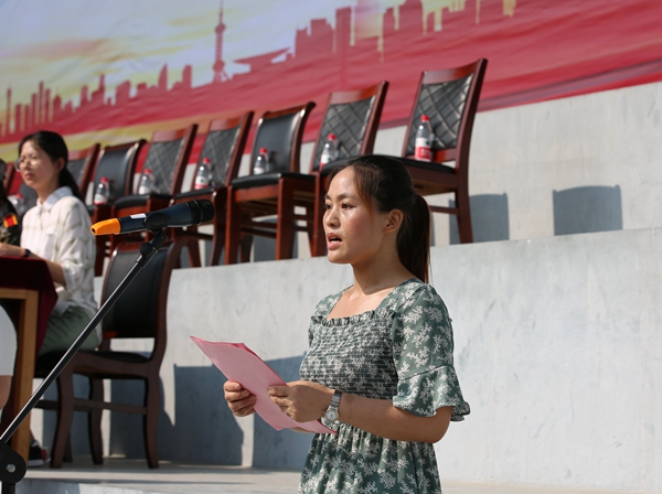 学生家长代表、汽车51932班边艳娜同学的母亲李爱芳女士发言