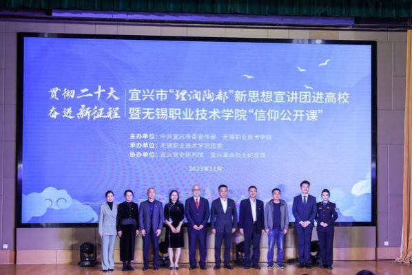 党委副书记杨雪琴为活动致辞,她指出,本次新思想宣讲团进高校活动,是我校与宜兴市委宣传部强化党的创新理论传播的积极探索,也是深化校地合作、共谋发展的有益尝试,希望我校师生能够从中感悟思想伟力、汲取奋进力量,让真理的力量、信仰的火种星火燎原,凝聚起广大师生奋进新征程、建功新时代的磅礴伟力。