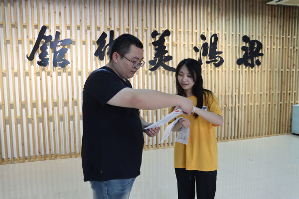 在梁鸿美术馆,江苏桥本数码科技有限公司总经理张鑫为大家介绍了美术馆发展状况、馆藏书画作品及文物修复与保护相关技术,特别是公司通过领先技术在无锡市文物修复与保护等方面取得的成果,并指导学生党员利用高科技记录技术进行传统文化传承、文物保护以及推进社会文明与经济发展。学生党员们在参观结束后,向参观美术馆的观众发放了反诈宣传单,宣传普及金融及反诈知识。