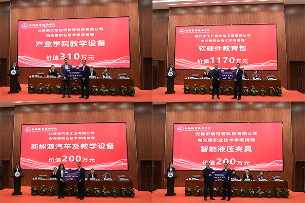 开幕式上,出席会议的嘉宾、企业代表和校领导共同为我校省发改委工程研究中心、智能制造国家标准试验验证平台、省科协智库基地、科协之家、哲社重点研究基地和产业学院等机构正式揭牌。龚方红校长代表学校与企业签订2项重大技术合作项目,总合同额达600万元,并接受西门子、比亚迪、蔡司、新大陆、瑞可特等5家企业的捐赠,捐赠的精密仪器、机床夹具及技术软件包等装备价值合计5080万元。