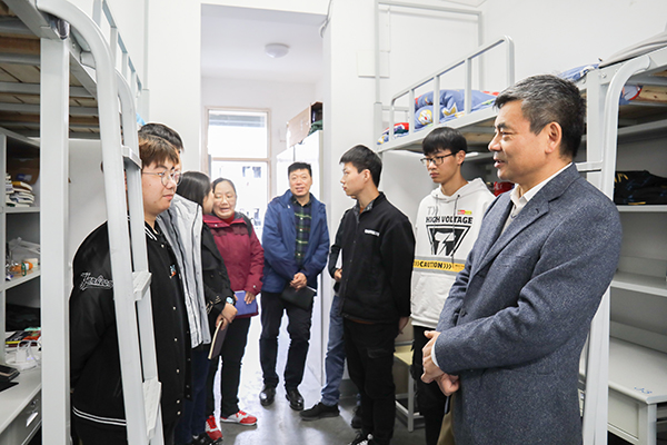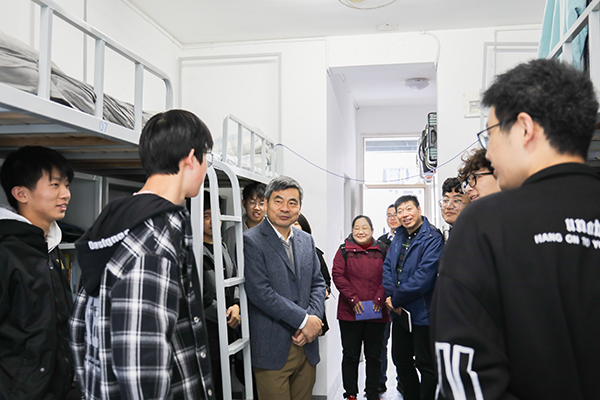 “同学们,在学校吃住习惯吗?有什么困难?”在新生宿舍,朱爱胜一句句贴心的家常问候拉近了与同学们的心理距离,大家纷纷表达了入学以来的感受和对大学生活的期待。在随后的座谈会中,朱爱胜还向同学们分享了学校近年来发展历程和取得成绩,特别介绍了学校在教学环境、实验实训设备和校园文化等方面的投入,勉励同学们做好学业和职业生涯规划,利用好在校时光,情理兼修、勇于开拓,让自己离梦想更近。