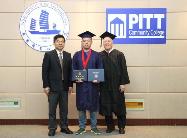 6月27日上午,中美合作机械制造与自动化专业2014届学生毕业典礼在国际交流中心二楼报告厅举行,这是我校第三届中美合作办学项目毕业生,其中有25人获得合作院校皮特社区学院副学士学位。