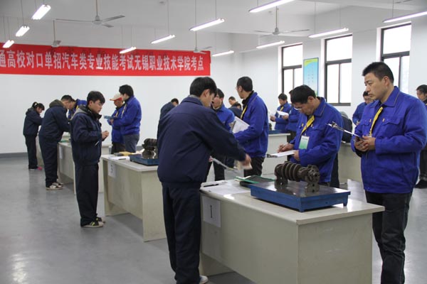 3月8日至9日,2014年江苏省普通高校对口单招汽车类专业技能考试在我校举行,来自无锡、南京、常州、苏州、连云港、淮安、盐城等省内8个城市的409名考生参加了汽车机械零部件测量、专业设备和仪器使用、汽车总成部件及组件拆装等多个项目的考试。