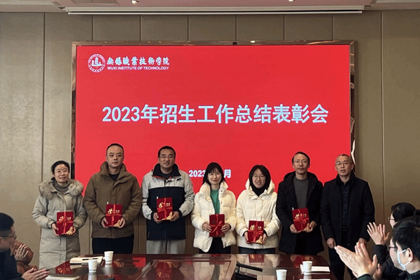 强伟纲宣读了《关于表彰2023年招生先进团队及先进个人的决定》,并为获奖团队和个人代表颁发证书,代表学校向一线招生工作人员表示感谢,要求各片区在招生工作中注重生源质量的提升,提前谋划各阶段的招生人数,并强调严格遵守招生工作相关纪律要求,合理合规使用经费,希望各片区为进一步做好学校招生工作、推动学校建设职业技术大学作出贡献。