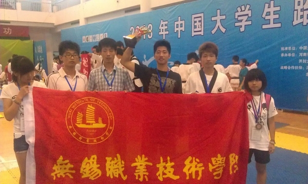 13日,由王坤老师领队、7名队员组成的我校代表队,在比赛中奋力拼搏,最终,裴玲同学荣获丙组女子个人竞技62公斤级金牌,董梦宇同学荣获丙组男子个人品式银牌,邱馨同学荣获丙组女子个人竞技46公斤级铜牌,我校代表队还获得男团竞技第三名、女团品式第三名,顾伟同学被授予“优秀运动员”称号。