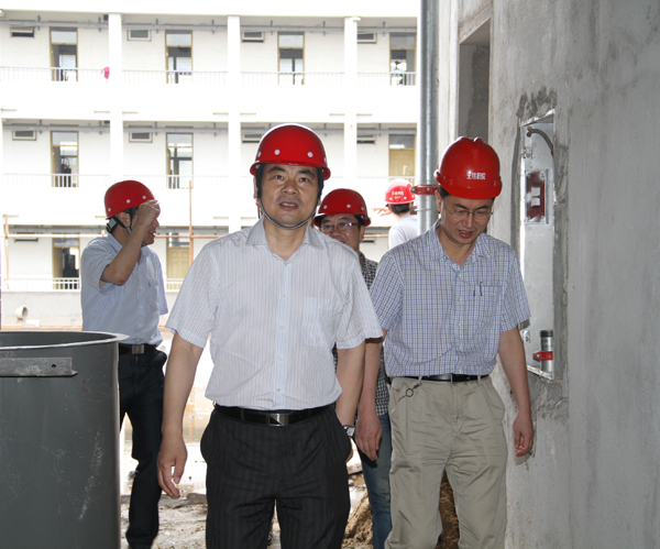 校领导一行听取了承建单位和基建处负责人关于工程项目建设进度的汇报,并深入工程现场实地察看工程进展情况。朱爱胜书记对基建处人员的辛勤付出和承建单位的努力建设表示感谢,对下一步工程建设提出了具体要求:一要保质量,要扎实、严谨、细致做好施工的各个环节,确保这项重点工程高标准、高质量完成,成为精品工程;二要保安全,要求施工方严格规范施工,增强防范意识,加强安全生产现场管理,切实落实安全生产责任;三要保进度,要求施工人员紧紧抓住暑期施工的“黄金时期”,克服高温酷热带来的施工困难,科学合理安排好施工进度,确保工程在今秋新学期开学前交付使用。