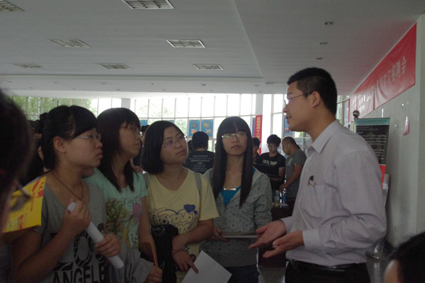 6月13日下午,共青团无锡市委、滨湖区高层次人才服务中心与我校联合举办的2013年暑期实习专场招聘会在J3大厅举行,来自无锡、苏州等地的31家企业为在校学生提供了500多个实习岗位。