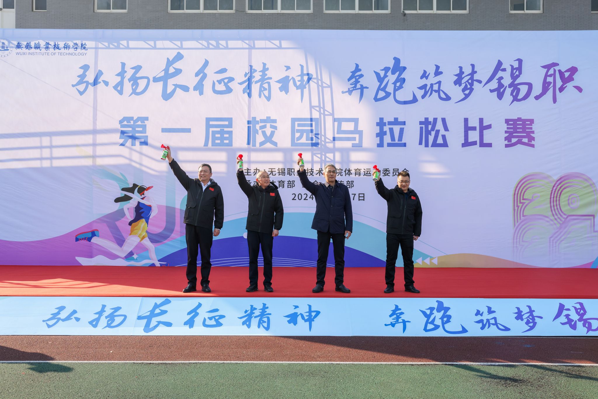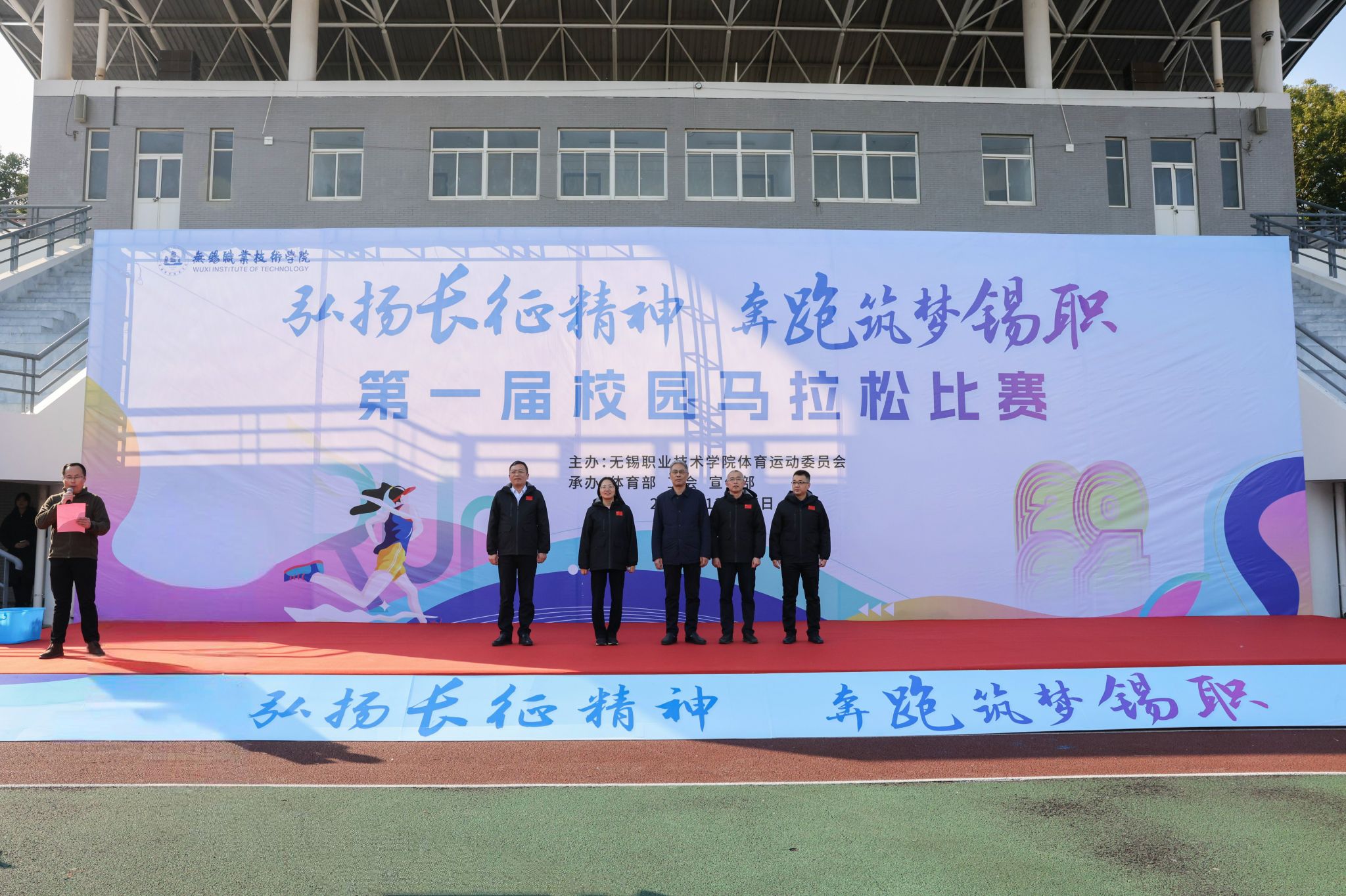 本次比赛以“弘扬长征精神,奔跑筑梦锡职”为主题,吸引了全校师生的广泛关注与参与。随着校领导周桂瑾、杨雪琴、强伟纲、储开峰、李衔一起鸣枪发令,马拉松比赛正式开跑。人潮瞬间开始流动,在校园内化为一条奔跑的激流,为冬日校园增添了活力和暖意。赛道内,选手们在承载无限希望的赛道上坚定目光奋力向前;赛道外,志愿者和观赛人群加油助威、暖心鼓励。比赛现场变成一道充满激情热血和人文关怀的独特风景线,促进了师生间、同学间的交流和沟通,让大家感受到了集体的力量和友谊的温暖。