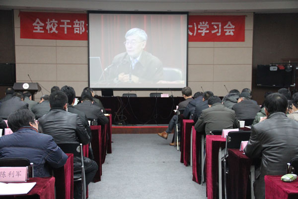 为提高领导干部综合素质和管理服务水平,进一步推动学校事业发展,新学期干部培训暨中心组(扩大)学习会于2月20日下午在国际交流中心二楼报告厅开班,全校副科级以上干部110多人参加了集中学习。