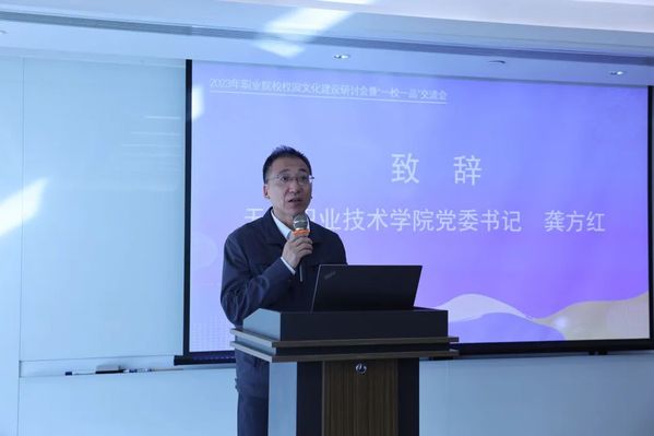 本次会议在教育部职业院校文化素质教指委指导下举办,我校承办,党委书记龚方红在致辞中表示,学校历来高度重视校园文化建设,先后建设了“三馆四园一中心”,形成了文化素质、公共艺术、心理健康、创新创业、职业生涯规划等系列课程,学生创新能力和职业素质明显提升。今后,学校将继续作好文化传承和引领的践行者,厚植家国情怀,增强文化自信,主动适应学生全面发展所需,将“立德树人”融进办学理念和办学特色中。