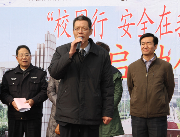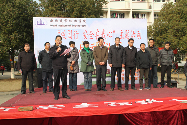 启动仪式上,校党委副书记谈向群宣布“校园行 安全在我心”系列宣传教育活动启动,保卫处李燮平处长、雪浪派出所冀晓华警官先后讲话,阐述了此次活动的重要意义和具体措施,学生代表宣读了活动倡议书。