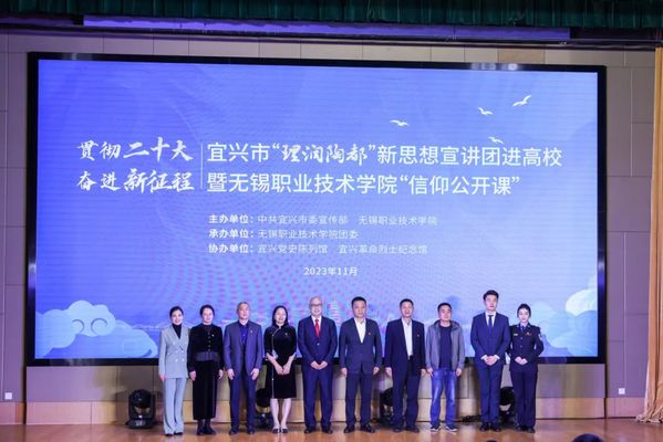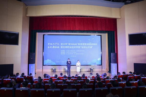 党委副书记杨雪琴为活动致辞,她指出,本次新思想宣讲团进高校活动,是我校与宜兴市委宣传部强化党的创新理论传播的积极探索,也是深化校地合作、共谋发展的有益尝试,希望我校师生能够从中感悟思想伟力、汲取奋进力量,让真理的力量、信仰的火种星火燎原,凝聚起广大师生奋进新征程、建功新时代的磅礴伟力。
