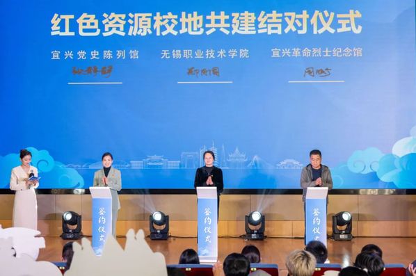 活动现场,我校与宜兴党史陈列馆、宜兴革命烈士纪念馆签订红色资源校地共建协议,接受了宜兴档案史志馆向我校习近平新时代中国特色社会主义思想青年学社捐赠的红色读物,并聘请“理润陶都”新思想宣讲团成员为学校“青年学习导师”。
