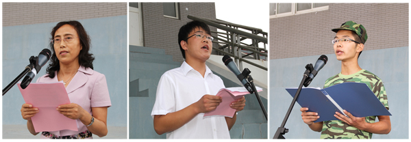 教师代表、老生代表和新生代表发言