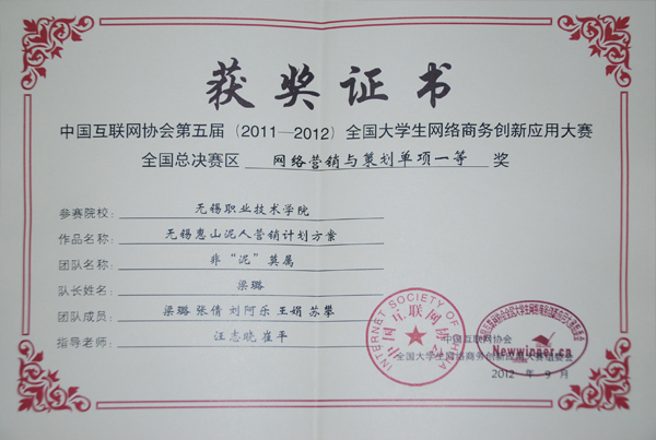 在刚刚结束的第五届全国大学生网络商务创新应用大赛总决赛上,我校由经济管理学院汪志晓、崔平老师指导,营销41031班梁璐,电商41031班刘阿乐、王娟以及市场营销41191班的苏攀、张倩组成的非“泥”莫属代表队喜获大赛网络营销与策划单项一等奖。