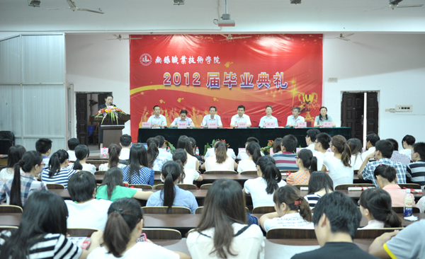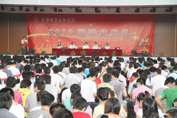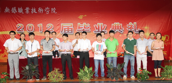 顾京副校长主持毕业典礼。华坚副校长作2012届学生毕业、结业情况报告,2012届应有毕业生3406人,由机械技术学院、控制技术学院、物联网技术学院、经济管理学院、汽车技术系、外国语言文学系、艺术设计系七个院系及经济管理学院中澳合作办学国际商务专业、机械技术学院中美合作办学机械制造与自动化专业三部分学生组成。曹建林副校长宣布了2012年毕业设计(论文)获得优秀等级的学生名单,在今年的论文答辩过程中,共有59名学生的毕业设计(论文)获优秀等级。党委副书记谈向群宣布了2012届优秀毕业生名单,全体校领导为优秀毕业生颁发毕业证书。