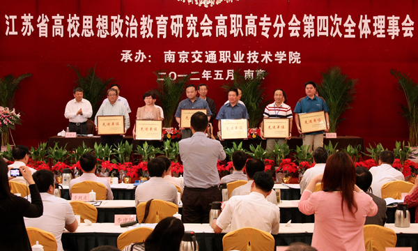 5月30日,江苏省高校思想政治教育研究会高职高专分会第四次全体理事会在南京翠屏山会议中心隆重召开。省教育厅副厅长殷翔文、省交通运输厅副厅长汪祝君、省教育厅社政处处长汪国培、省交通运输厅政治处处长陈萍及来自全省近60所院校的100多名代表出席了大会。