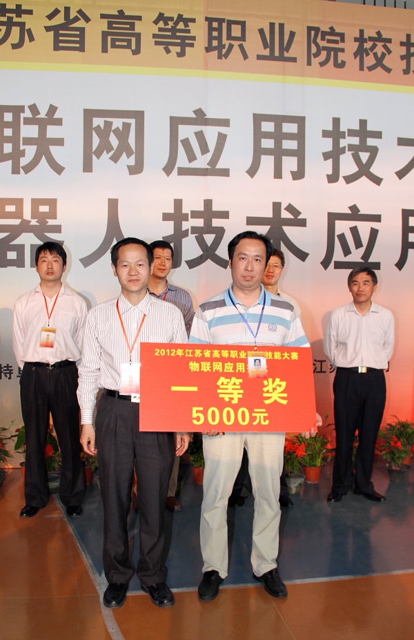 5月5日下午,经过6个半小时的紧张角逐,江苏省高等职业院校技能大赛物联网应用技术赛项鸣金收兵,我校由物联网技术学院教师曹建峰、潘健指导,由学生魏玮、吴军和陈笑雷组成的代表队夺得一等奖。