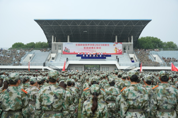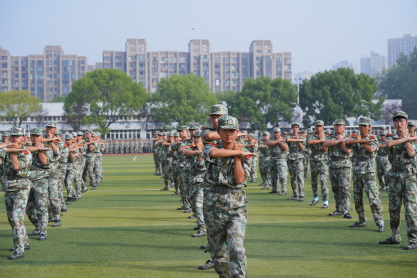 在庄严的升国旗仪式后,军训成果汇报大会拉开序幕,参训新生代表首先带来男子擒敌拳、女子军体拳表演。200名男生组成擒敌拳方队,喊杀声响彻天地,出拳刚劲有力、虎虎生风;200名女生组成军体拳方队,口号嘹亮、动作利落,一招一式气势如虹,展示了锡职女生巾帼不让须眉的豪情。