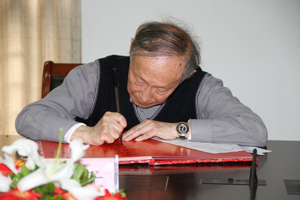 讲座结束后,年近八旬的杨叔子院士还饶有兴致地欣赏了学生社团的书法原创诗词作品,并即兴书写“无限风光在险峰”的诗句相赠勉励。(宣传部)