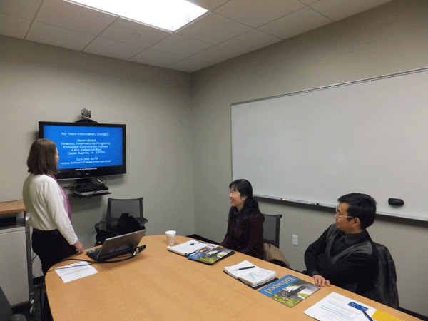 3月4日至3月7日,代表团与经济管理学院院长崔平、教师刘一鸣前往美国社区学院国际发展协会(CCID)总部所在的衣阿华州锡达拉皮兹市的柯克伍德社区学院(Kirkwood Community College)进行访问交流并达成了初步合作意向,2014年我校将与该校合作接收美国管理类专业学生来华短期修学项目。此外,代表团顺访了CCID总部,与CCID主席布朗女士以及项目经理Andrea共同探讨了美国学生来华修学项目。
