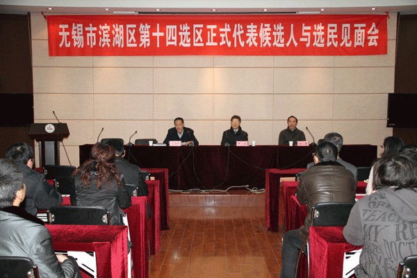 2月22日下午,滨湖区第十四选区人大代表候选人与选民见面会在国际交流中心二楼报告厅举行。我校经过民主推荐、反复讨论产生的两位候选人,与到会的60多名师生选民代表进行了面对面的交流。