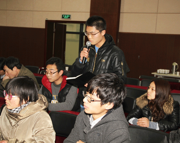 下午3时,当主持见面会的校党委副书记谈向群简要说明区人大代表候选人的陈述规定后,候选人外语系党总支书记江铭和院长戴勇(按姓氏笔划排名),先后在5分钟内向师生选民代表陈述了各自的简历及当选区人大代表后怎样履行好职责的做法。听了他俩简明扼要的陈述,师生选民代表陆丹晨、杜昱甫、申彧、张金秋、屠春风从不同角度分别向戴勇、江铭提出了“如何征求选民意见向上反映民意”、“如何处理书记与代表的关系”、“院长能否带头参加公益活动”、“怎么做好学生的就业工作”等问题。两位候选人当即回答了师生选民的提问。他们精彩的回答,赢得了在场选民代表的阵阵掌声。