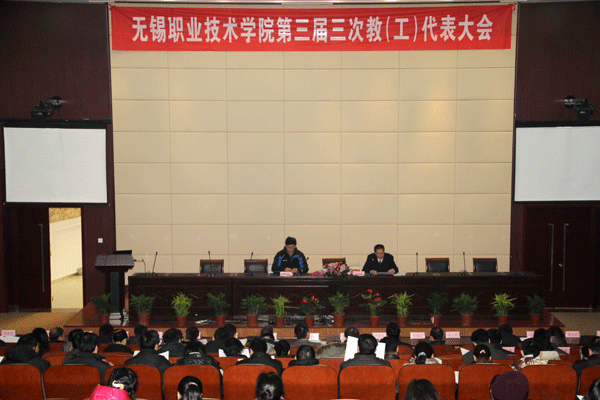 2月11日刚开学,我校第三届第三次教职工(工会)代表大会在太湖校区国际交流中心一楼报告厅隆重举行。校领导朱爱胜、戴勇、谈向群、华坚、曹建林、冯渊、顾京,113名教职工(工会)代表及100名列席代表聚集一堂,共商学院发展大计。大会由党委副书记谈向群主持。