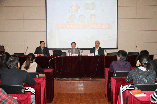 刘仁生同志从“天宫一号”上天开始,给大家介绍了我国航天事业的发展历程以及取得的伟大成就。中国航天事业从新中国成立之初的“一穷二白”到现在“天宫上天”准备建立空间站,期间经历了无数次的失败,但是正是有了伟大的“航天精神”才能得以推进。航天精神的本质就是不计个人得失,不怕任何困难,用科学的态度认真做好各项工作。当代大学生只有学习继承和发扬航天精神,才能担当起历史赋予我们建设创新型国家的重任和使命,才能成为未来合格的建设者和接班人。刘仁生同志勉励大家要学习航天精神,勤奋学习,立志报国。