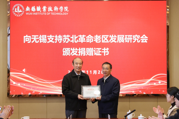 校党委书记龚方红对各界领导和无锡支持苏北革命老区发展研究会一直以来对学校发展的关心和支持表示衷心的感谢和诚挚的敬意。他指出,教育的发展离不开社会各界的关爱和支持,此次活动不仅是研究会捐资助学、造福桑梓的善举,也是对学校育人成果的认可,更是对责任意识与奉献精神的传递。他希望,以此活动为契机,进一步加强双方的交流合作,积极搭建校内外合作育人平台,让资助育人工作有温度有实效,同时期望此次受助学生以及所有的锡职学子崇德向善、见贤思齐,常怀感恩之心,以优异的成绩回报祖国、回报社会、回报家乡,谱写自己人生的精彩篇章。