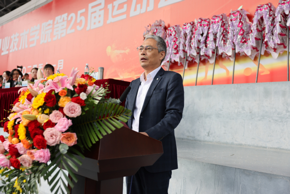庄严的升国旗仪式后,校长周桂瑾致开幕词,回顾了过去一年我校竞技体育取得的成绩,他强调运动是生命的源泉,体育是强国的根基,希望全体运动员都能秉承“更快、更高、更强、更团结”的奥林匹克精神,赛出风格、赛出水平、赛出友谊;裁判员要严守规程、公正裁判;工作人员要忠于职守、热情服务。把第25届学校体育运动会办成一个安全、文明、热烈、精彩的盛会,进一步推动我校体育教育工作的高质量发展。