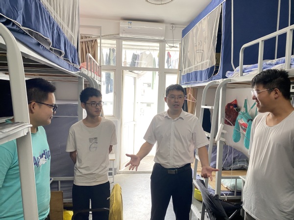 奚茂龙一行巡查了宿舍安全,要求留校的同学们做好宿舍的用电安全及防火、防盗和卫生工作。对于假期返乡同学,提醒同学们行程中注意交通安全和财务安全。希望同学们假期合理安排作息,过一个积极、健康、愉快的假期。