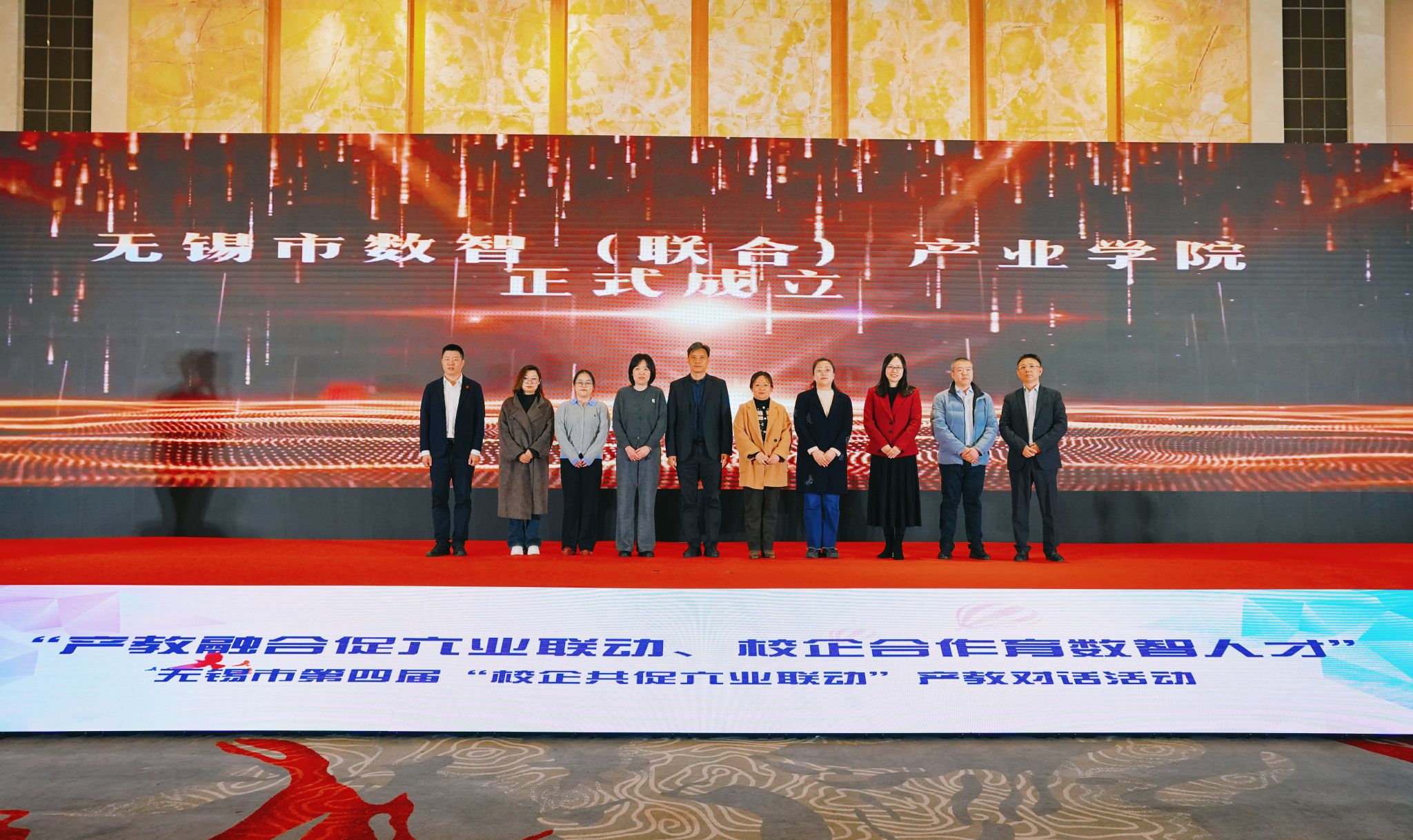 会上,我校财经学院、用友网络科技股份有限公司、新道科技股份有限公司和无锡畅捷科技发展有限公司联合成立的“长三角用友 YonSuite 项目远程交付实践中心”正式揭牌;我校财经学院、无锡商业职业技术学院会计金融学院、无锡城市职业技术学院会计学院、无锡开放大学财经与管理学院、无锡立信高等职业技术学校、无锡旅游商贸高等职业技术学校、江苏省江阴中等专业学校、新道科技股份有限公司、京东乾石科技股份有限公司和无锡畅捷科技发展有限公司联合成立“无锡市数智(联合)产业学院”。