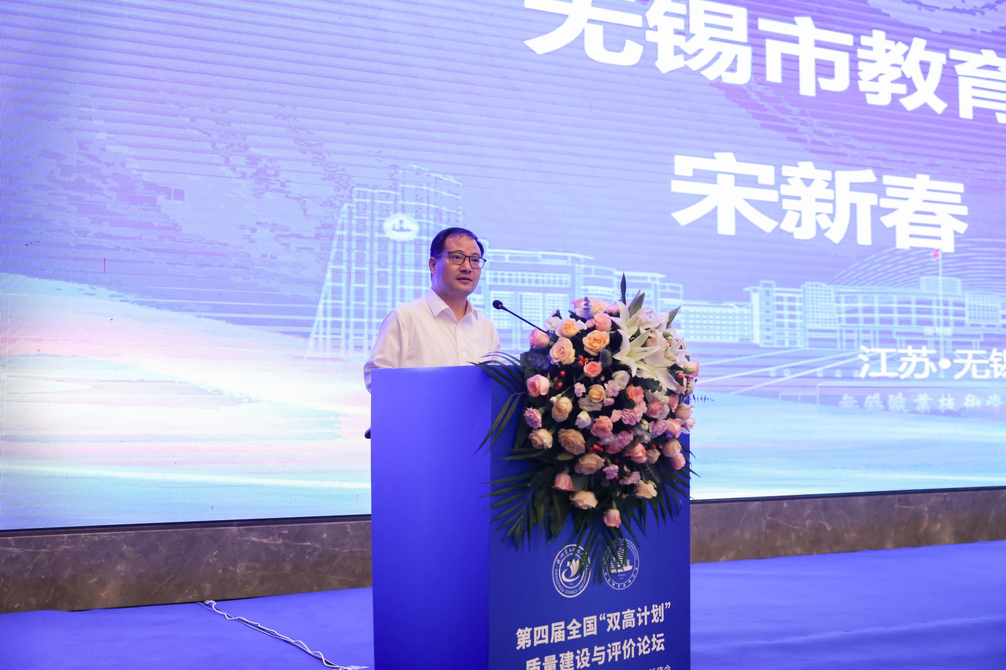 论坛由中国科教评价研究院、浙江高等教育研究院联合主办,以“新质生产力发展与职业技术教育的新使命”为主题。17日上午的会议开幕式由杭州电子科技大学资深教授、中国科教评价研究院院长邱均平主持,无锡市委教育工委副书记、无锡市教育局局长宋新春到会讲话,我校党委书记龚方红代表学校致辞。