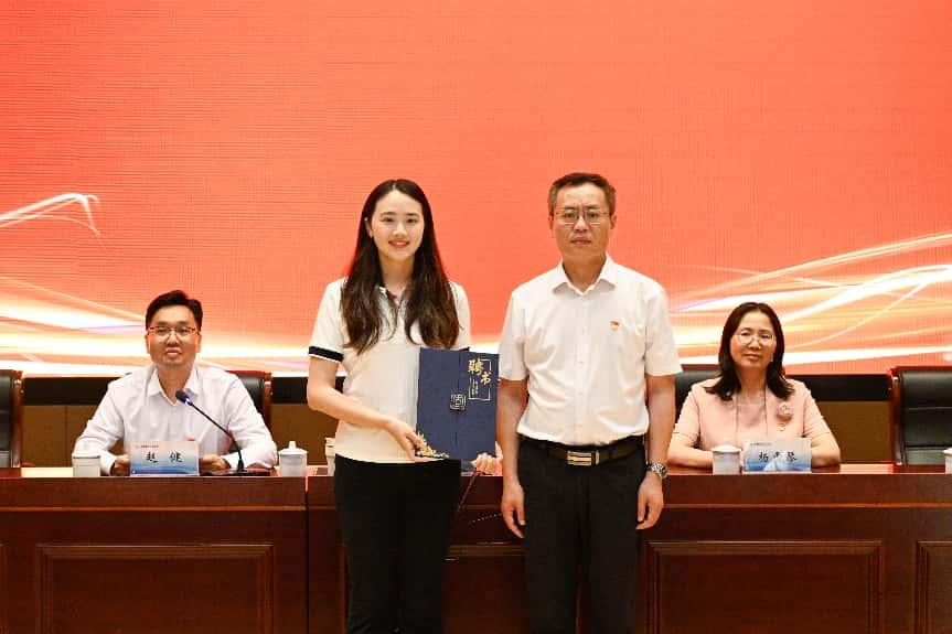 报告会由机关党工委书记、党委组织部副部长赵健主持,校党委副书记、工会主席杨雪琴和校工会常务副主席苗勇到场。苗勇代表校工会为周蓉颁发了“劳模工匠进校园”宣讲团特聘讲师聘书。