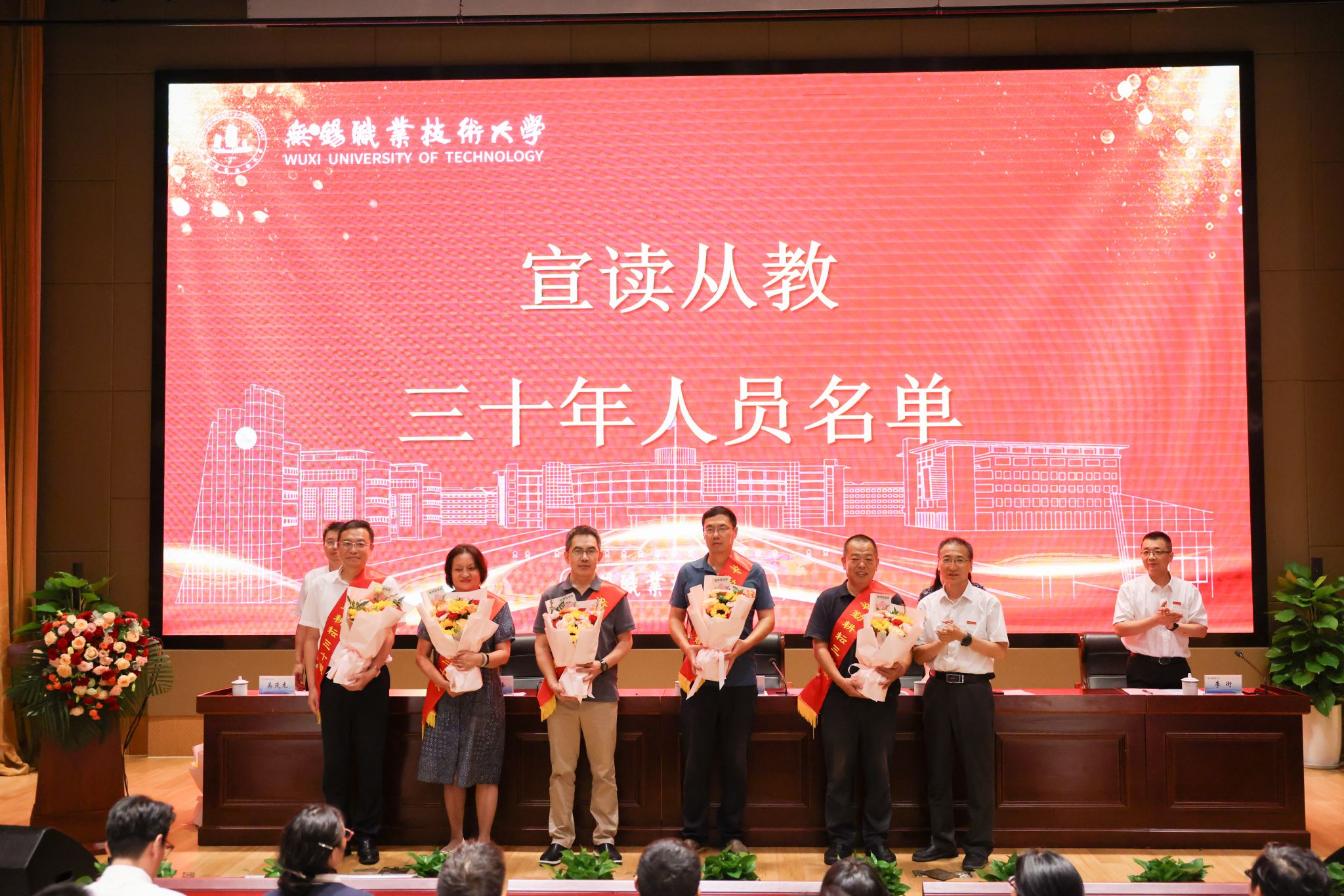 副校长奚茂龙宣读了《我校从教30年教职工名单》,储开峰、程远、吕伟文、薛庆红、倪卫东5位老师从教30年。