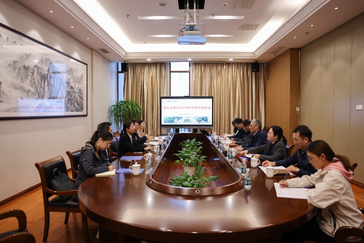 10月21日下午,无锡市科学技术协会党组书记吴莉萍、副主席张鹏飞、副主席王镇一行5人来我校调研高校科协工作。我校校长周桂瑾、副校长吴慧媛、校科协和智能制造技术研究院相关负责人、省市青年科技人才托举工程资助对象参加座谈交流。