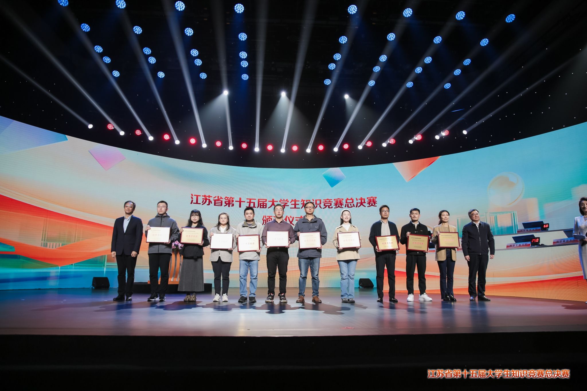 11月15日下午,江苏省第十五届大学生知识竞赛总决赛暨颁奖活动在江苏广电教育频道五楼演播厅举行。本次大赛我校共有305位同学获奖,其中一等奖1名、二等奖1名、三等奖60名、优秀奖243名,学校荣获优秀学校奖。教务处老师陪同一等奖获奖学生代表沈文萱到现场领奖。