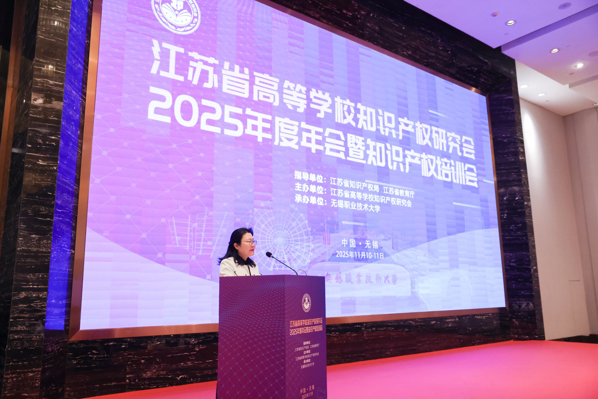 11月10日至11日,我校与南京航空航天大学联合承办的江苏省高等学校知识产权研究会2025年年会暨知识产权培训会在无锡举行。本次会议以“强化知识产权赋能,助力高校创新驱动发展”为核心导向,汇聚全省高校知识产权领域专家学者、实务工作者,共话行业发展新机遇、共探实践创新新路径。